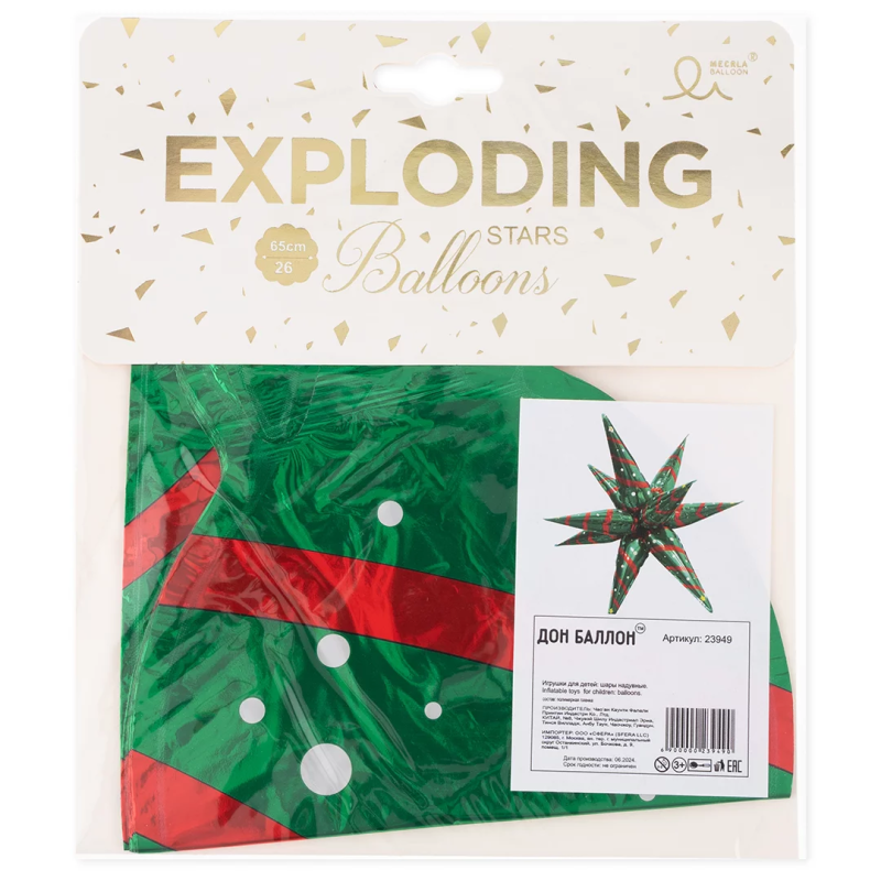 Шар 3D (26''/66 см) Звезда, Составная, Новогоднее настроение, 1 шт. в уп., 23949