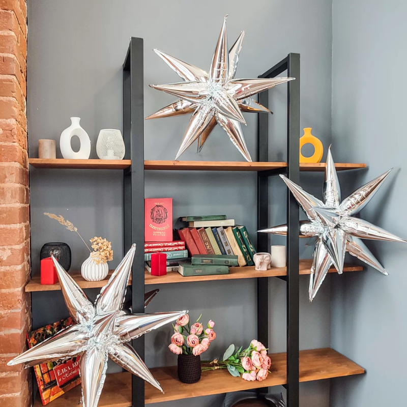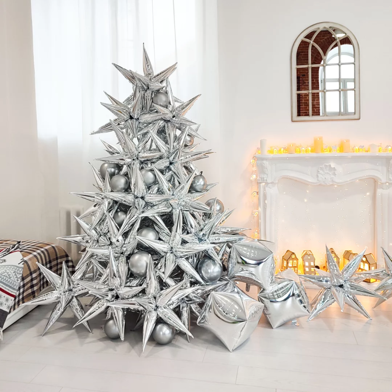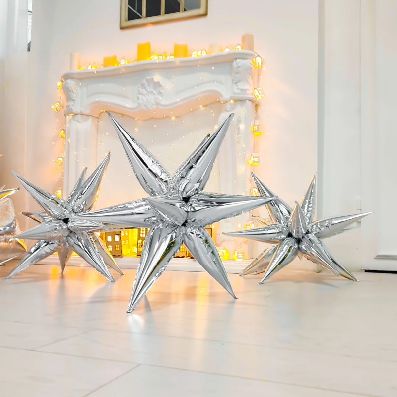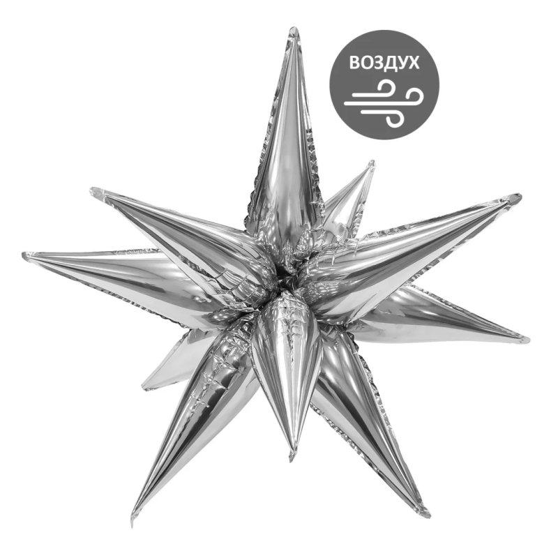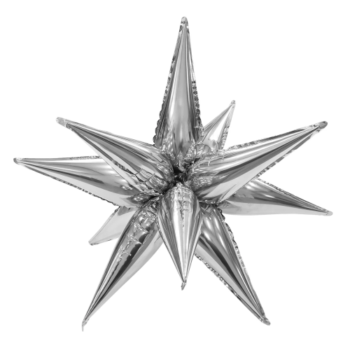 Шар 3D (26''/66 см) Звезда, Составная, Серебро, 1 шт. в уп., 222193