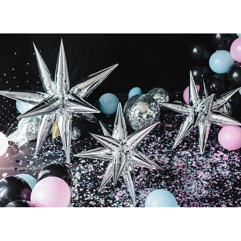 Шар 3D (26''/66 см) Звезда, Составная, Серебро, 1 шт. в уп., 60033