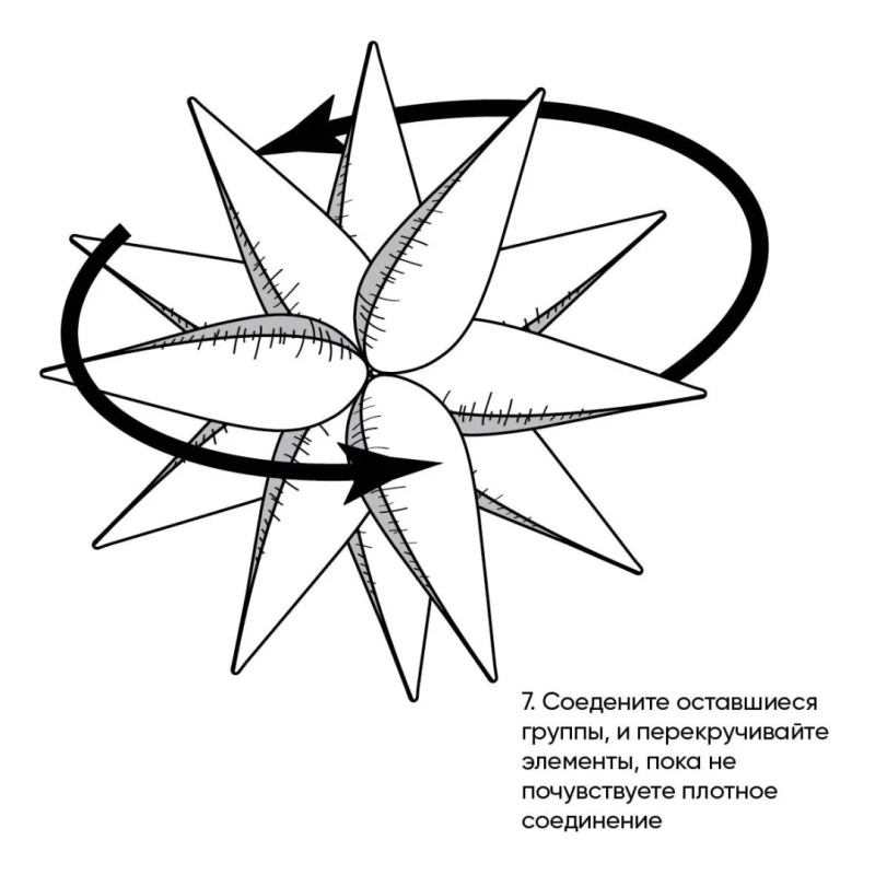 Фигура звезды предназначена для надува воздухом и состоит из 12 отдельных элементов со встроенным клапаном, которые после надува собираются в одну объемную фигуру.