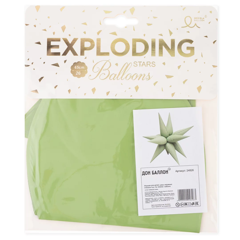 Шар 3D (26''/66 см) Звезда, Составная, Светло-зеленый, Сатин, 1 шт. в уп., 24826