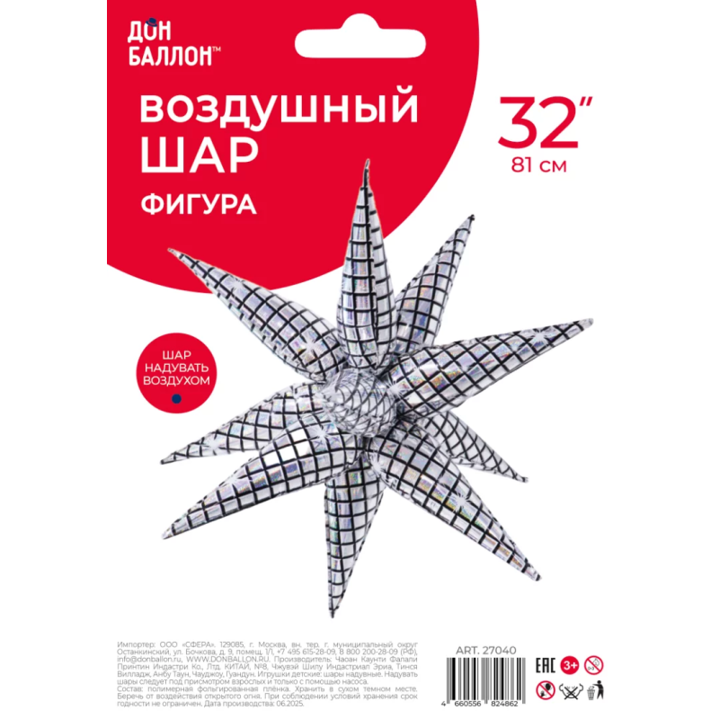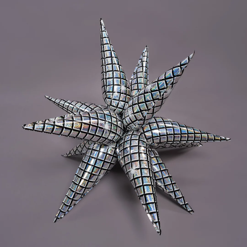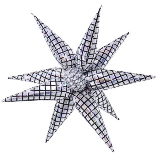 Шар 3D (32''/81 см) Звезда, Составная, Диско, Серебро, Голография, 1 шт. в уп., 27040