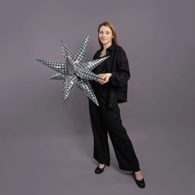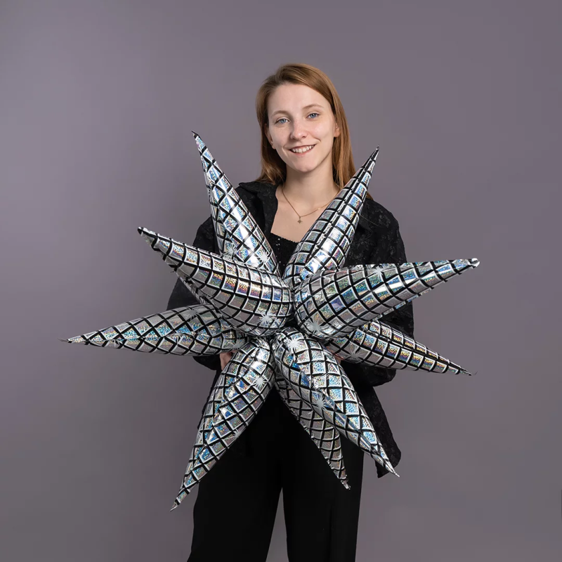 Фигура звезды предназначена для надува воздухом и состоит из 12 отдельных элементов со встроенным клапаном, которые после надува собираются в одну объемную фигуру.