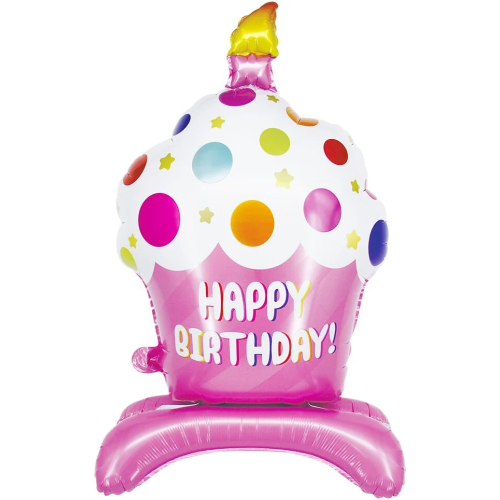 Шар 3D (35''/89 см) Фигура на подставке, Кекс на День Рождения, Розовый, 1 шт., 20011