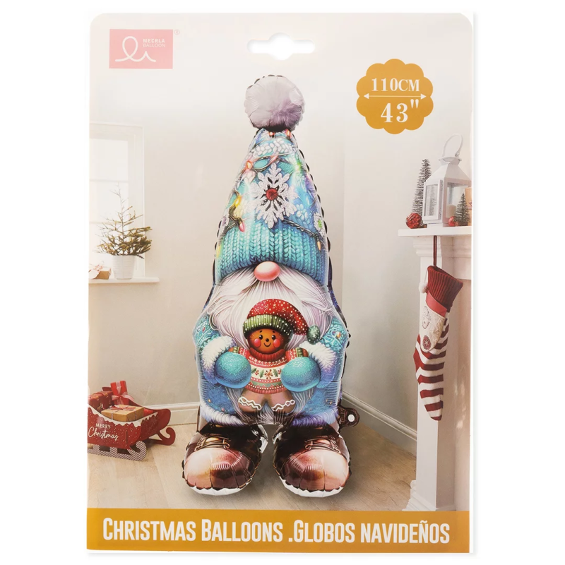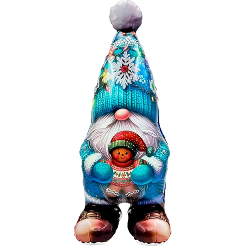 Шар 3D (35''/89 см) Фигура на подставке, Новогодний гном с подарком, 1 шт. в уп., 26831