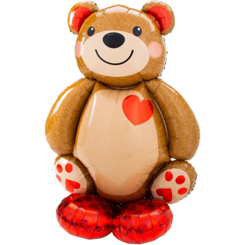 Шар 3D (36''/91 см) Фигура на подставке, Мишка с сердцем, 1 шт. в уп., 19767