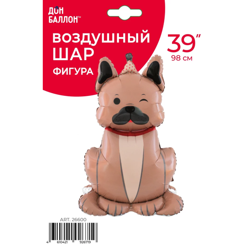 Шар 3D (39''/99 см) Бульдог в колпачке, 1 шт. в уп., 26600