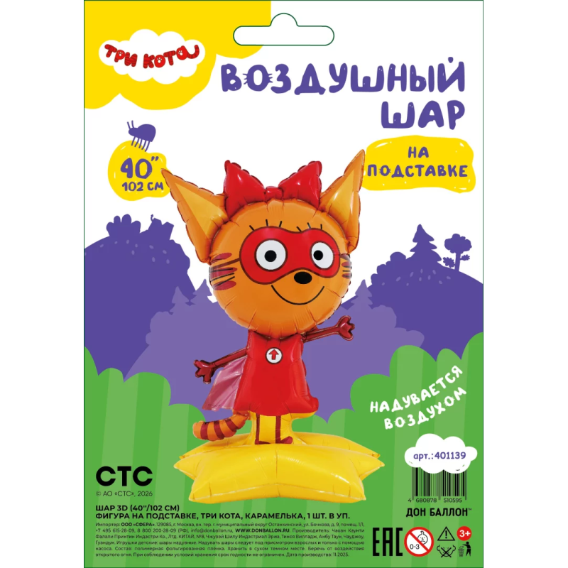 Шар 3D (40''/102 см) Фигура на подставке, Три Кота, Карамелька, 1 шт. в уп., 401139