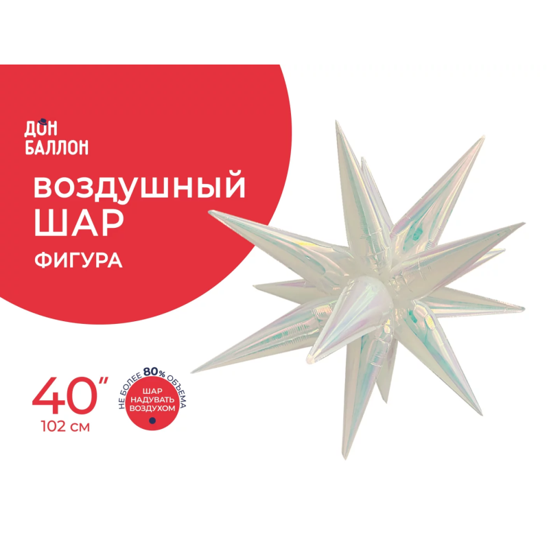 Шар 3D (40''/102 см) Звезда, Составная, Прозрачный, Хамелеон, 1 шт. в уп., 24907