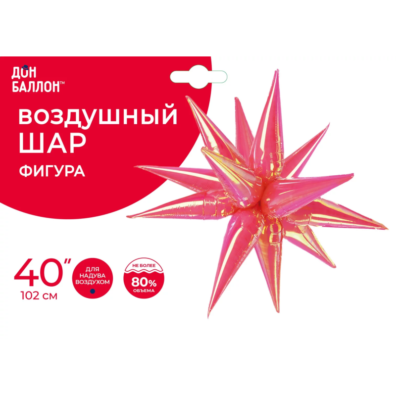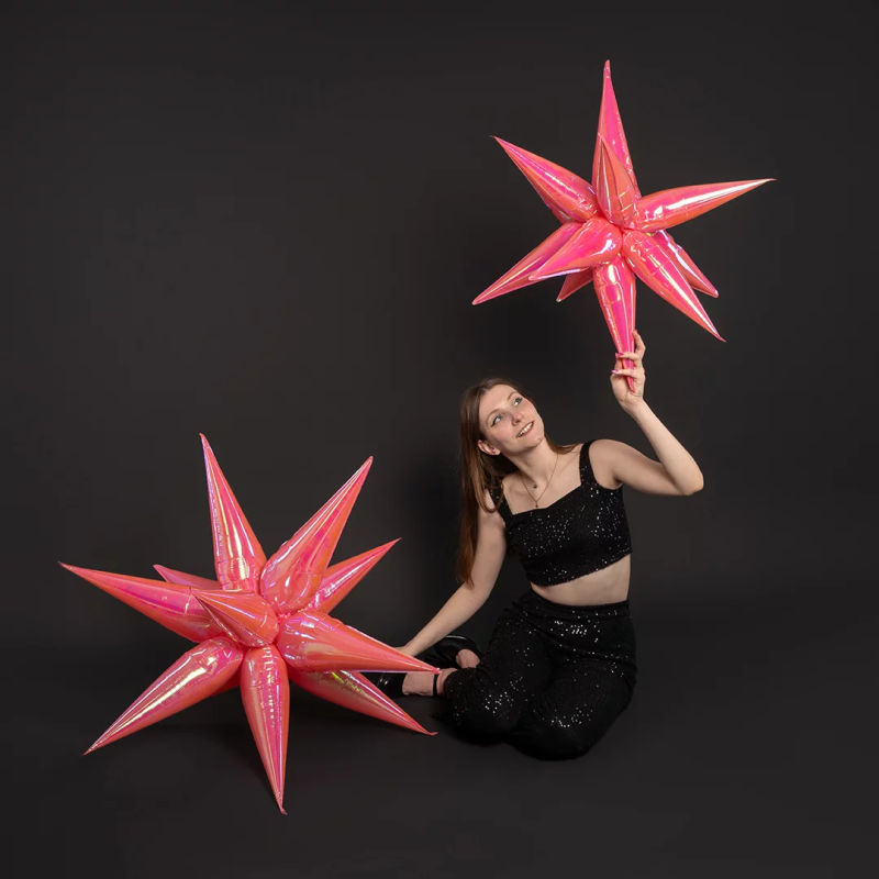 Шар 3D (40''/102 см) Звезда, Составная, Розовый, Хамелеон, 1 шт. в уп., 24997
