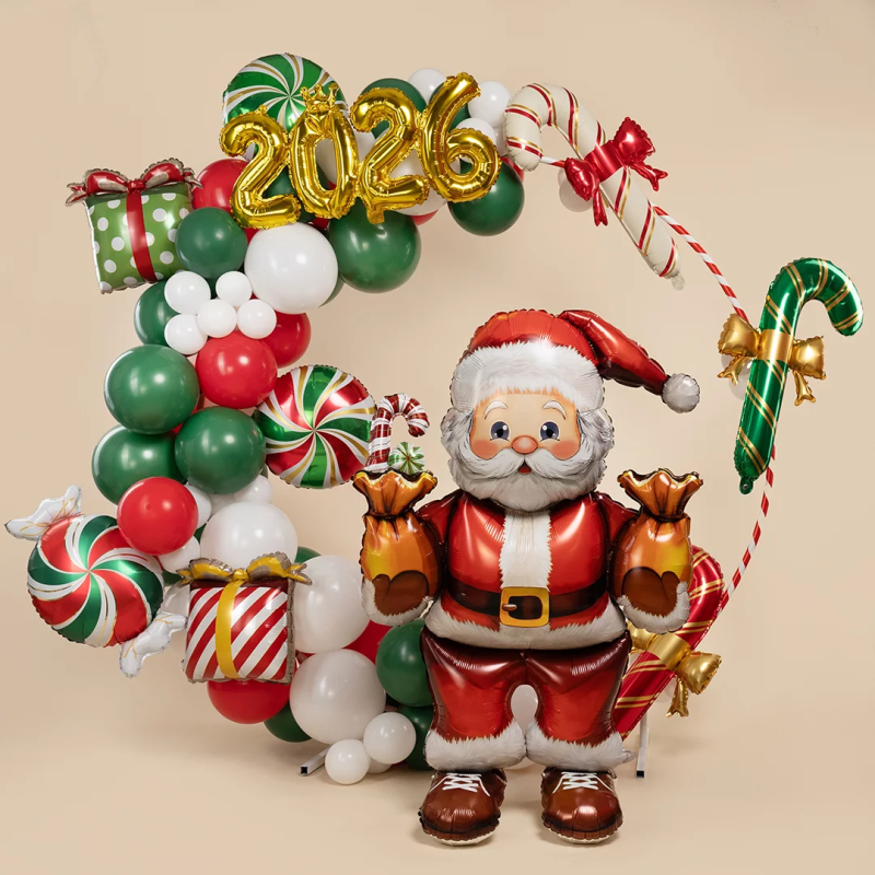 Шар 3D (43''/109 см) Фигура на подставке, Дед Мороз с подарками, 1 шт. в уп., 27156