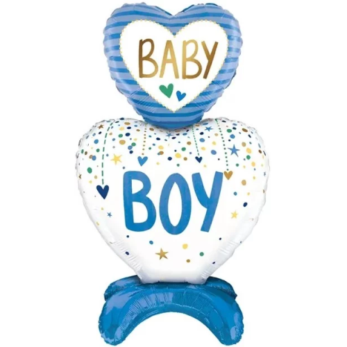 Шар 3D (43''/109 см) Фигура на подставке, Сердца для мальчика, Голубой, 1 шт. в уп., 23457