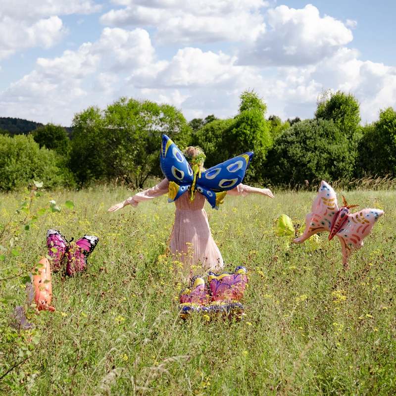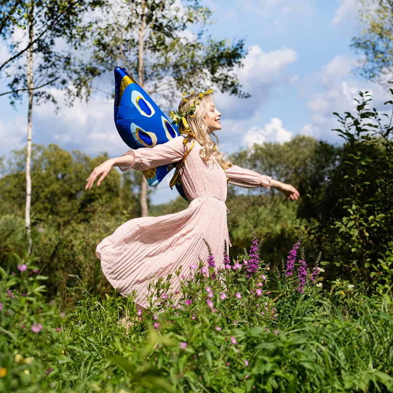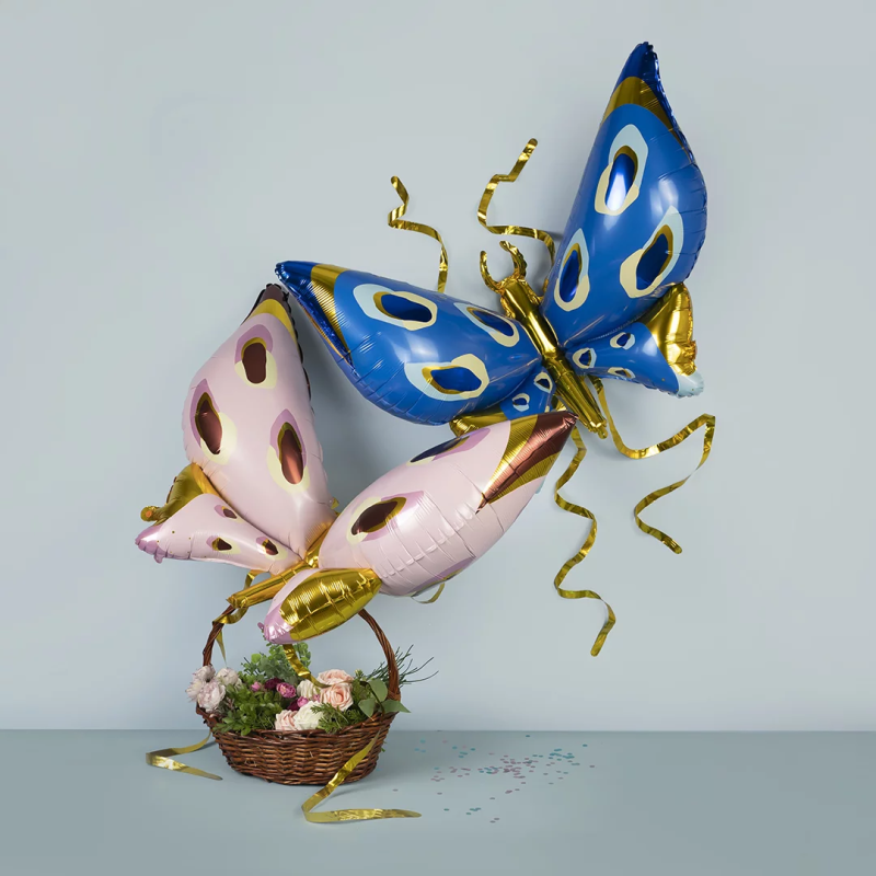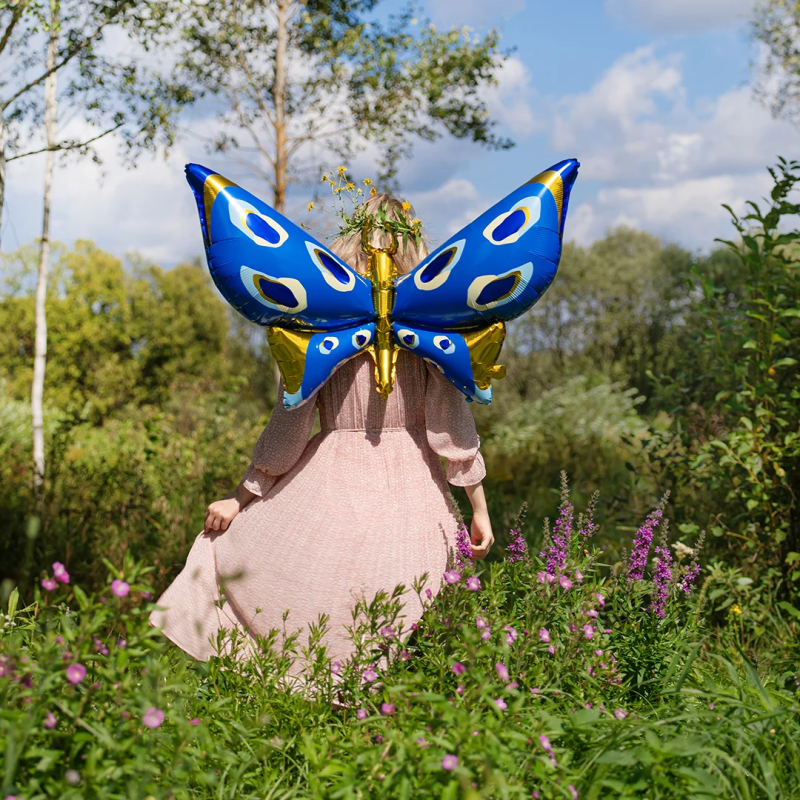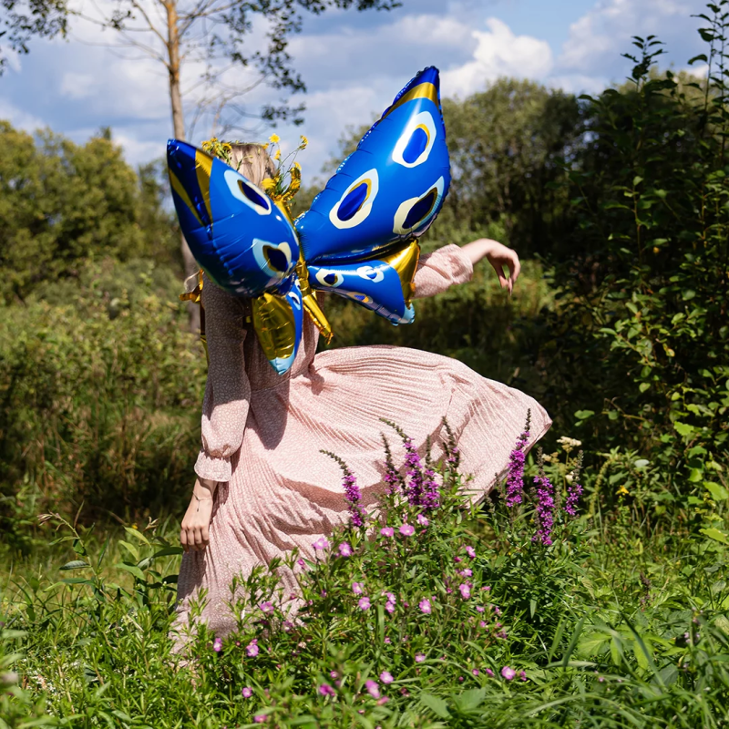 Шар 3D (45''/114 см) Фигура, Бабочка, Карнавальные крылья, Голубой, 1 шт., 23734