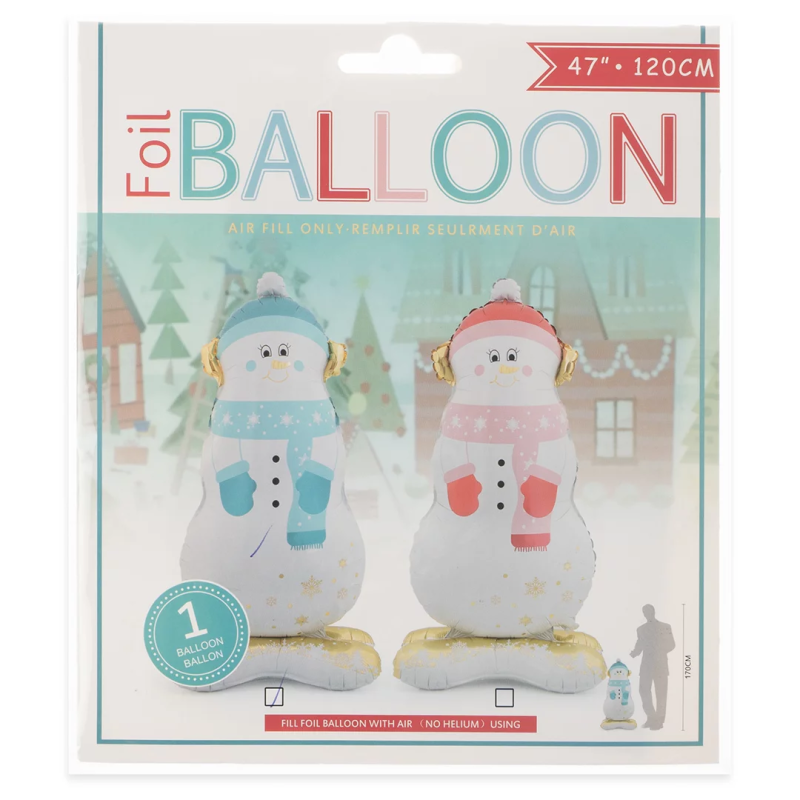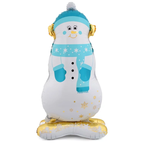 Шар 3D (47''/119 см) Фигура на подставке, Снеговик в голубом шарфе, 1 шт. в уп., 24374