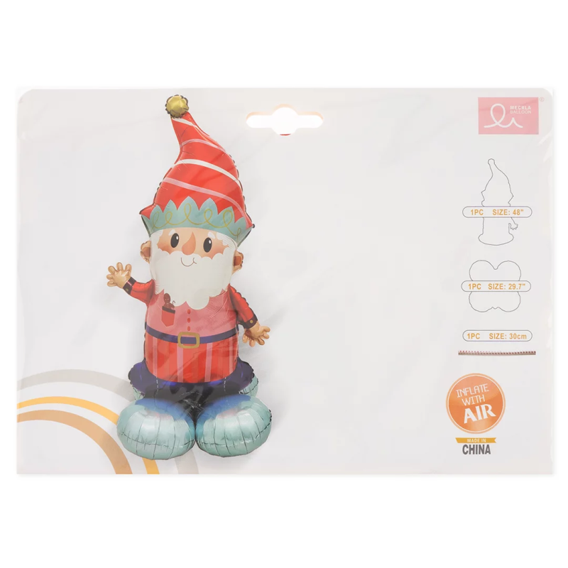 Шар 3D (48''/122 см) Фигура на подставке, Новогодний гном, 1 шт. в уп., 24386