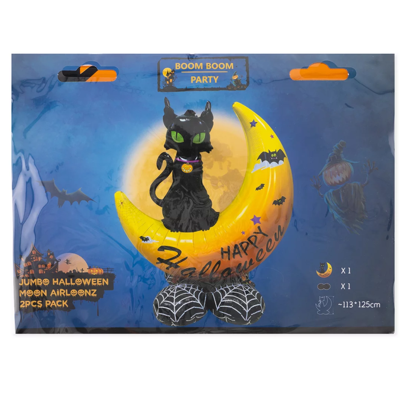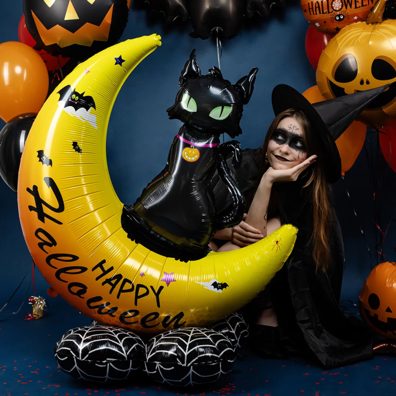 Шар 3D (49''/124 см) Фигура на подставке, Кошка на луне, 1 шт. в уп., 24356