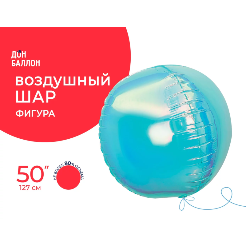 Шар 3D (50''/127 см) Сфера, Голубой, Хамелеон, 1 шт. в уп., 24942