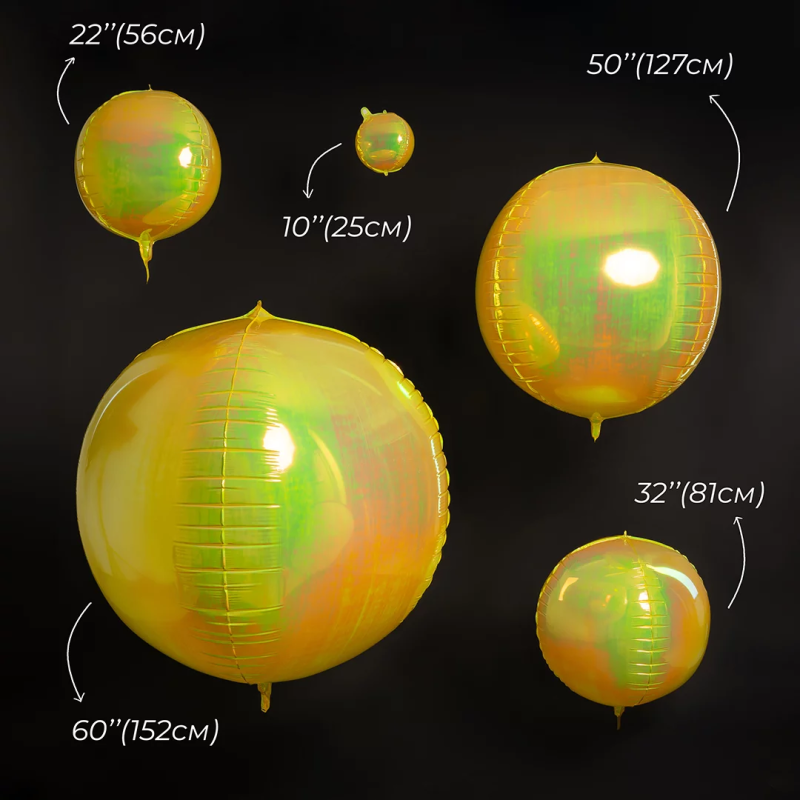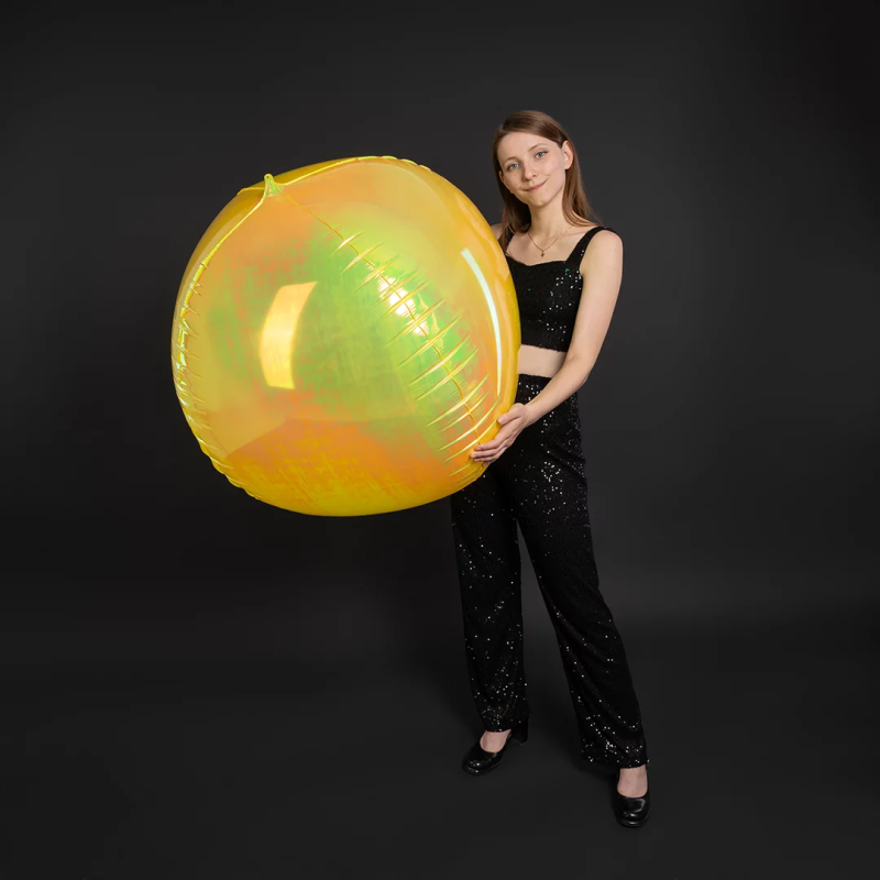 Шар 3D (50''/127 см) Сфера, Желтый, Хамелеон, 1 шт. в уп., 24937