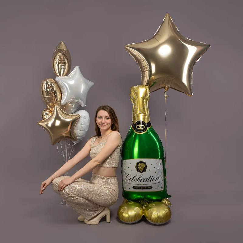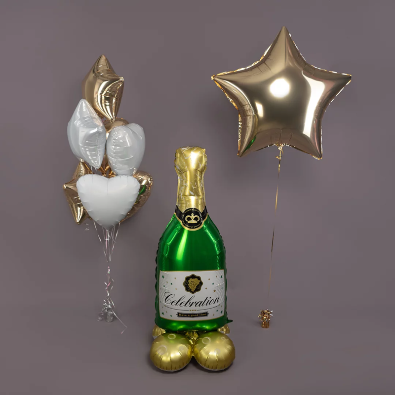 Шар 3D (51''/130 см) Фигура на подставке, Бутылка Шампанское, 1 шт. в уп., 26204