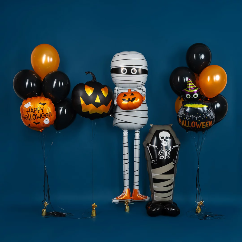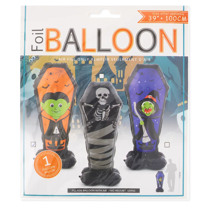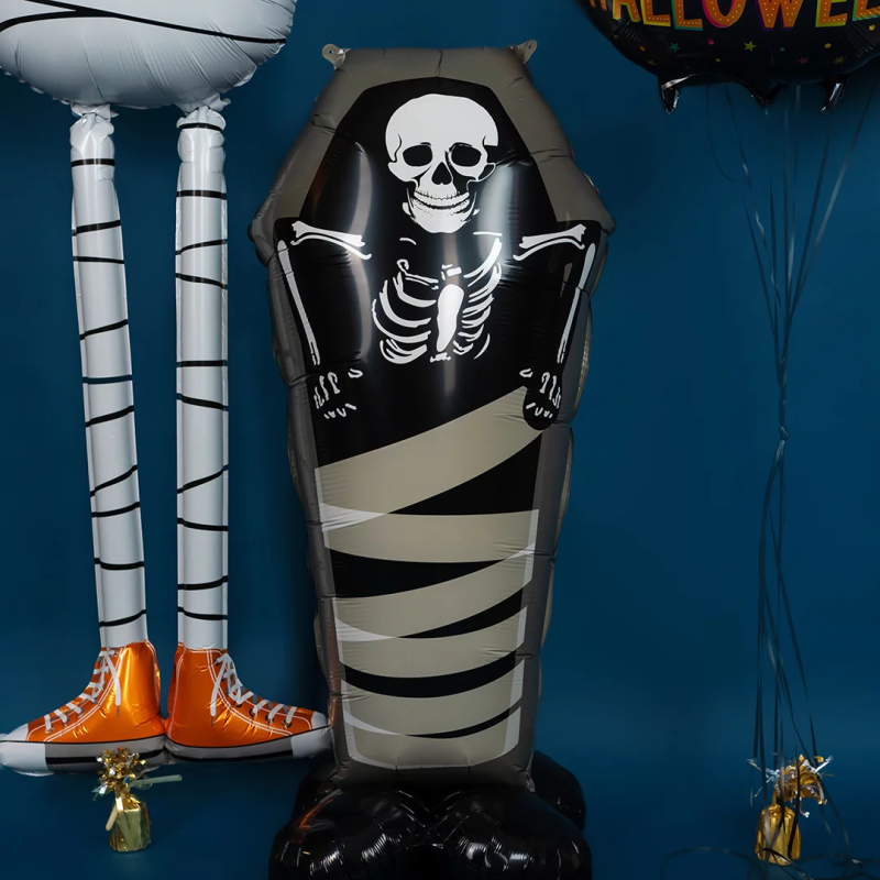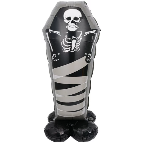 Шар 3D (51''/130 см) Фигура на подставке, Скелет в гробу, Черный, 1 шт. в уп., 24698