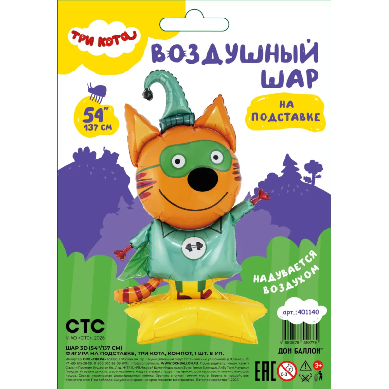 Шар 3D (54''/137 см) Фигура на подставке, Три Кота, Компот, 1 шт. в уп., 401140