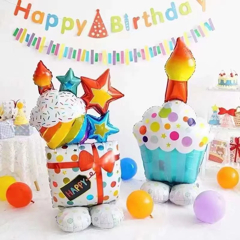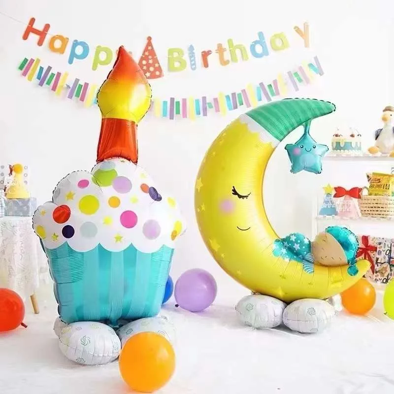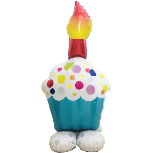 Шар 3D (55''/140 см) Фигура на подставке, Кекс со свечкой, 1 шт. в уп., 19877