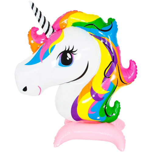 Шар 3D (55''/140 см) Фигура на подставке, Радужный единорог, Розовый, 1 шт. в уп., 19812