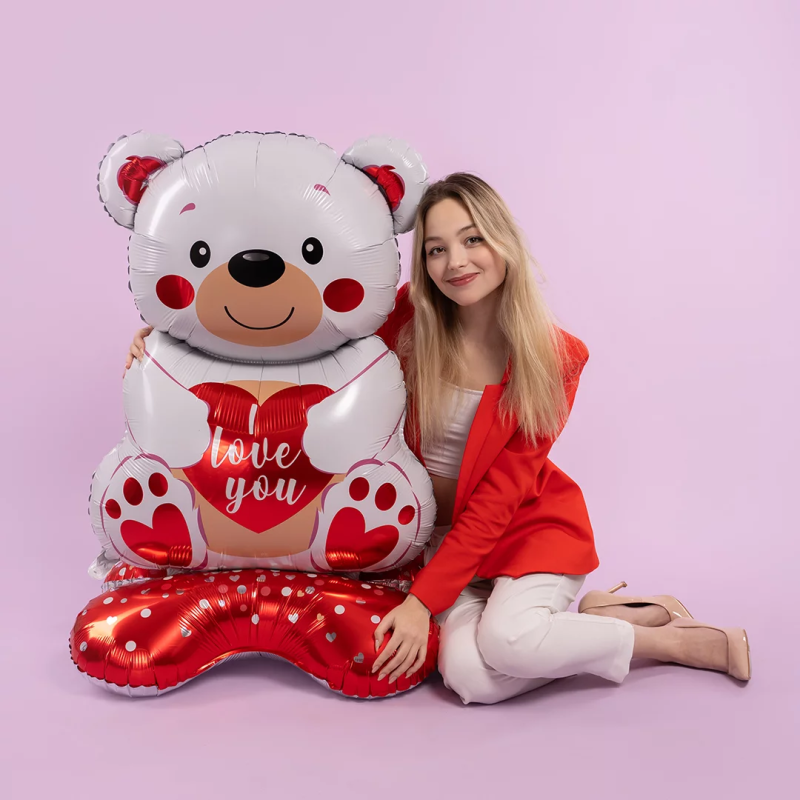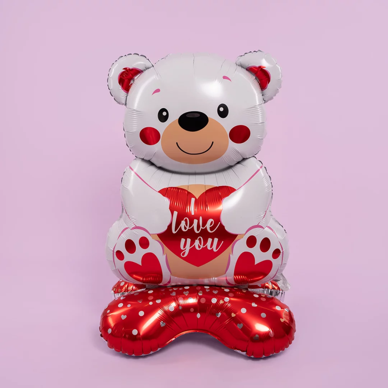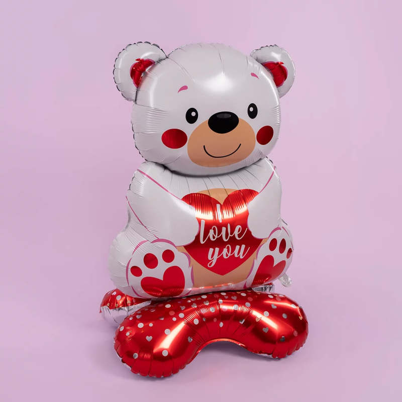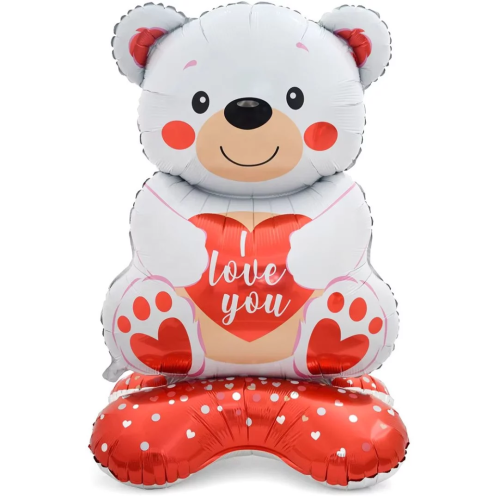 Шар 3D (58''/147 см) Фигура на подставке, Мишка с сердцем, Белый, 1 шт. в уп., 26278