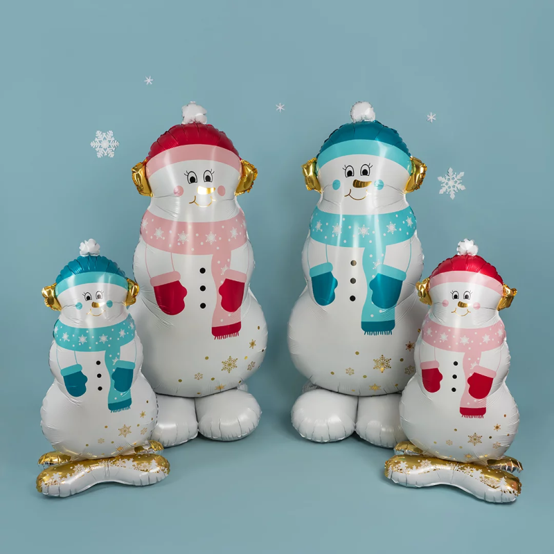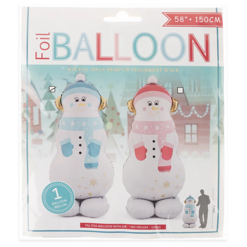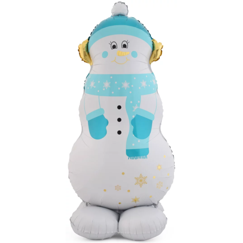 Шар 3D (58''/147 см) Фигура на подставке, Снеговик в голубом шарфе, 1 шт. в уп., 24865