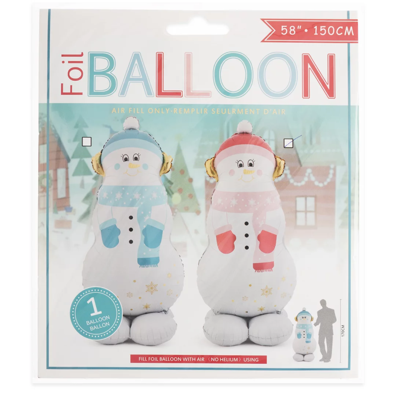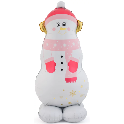 Шар 3D (58''/147 см) Фигура на подставке, Снеговик в розовом шарфе, 1 шт. в уп., 24864