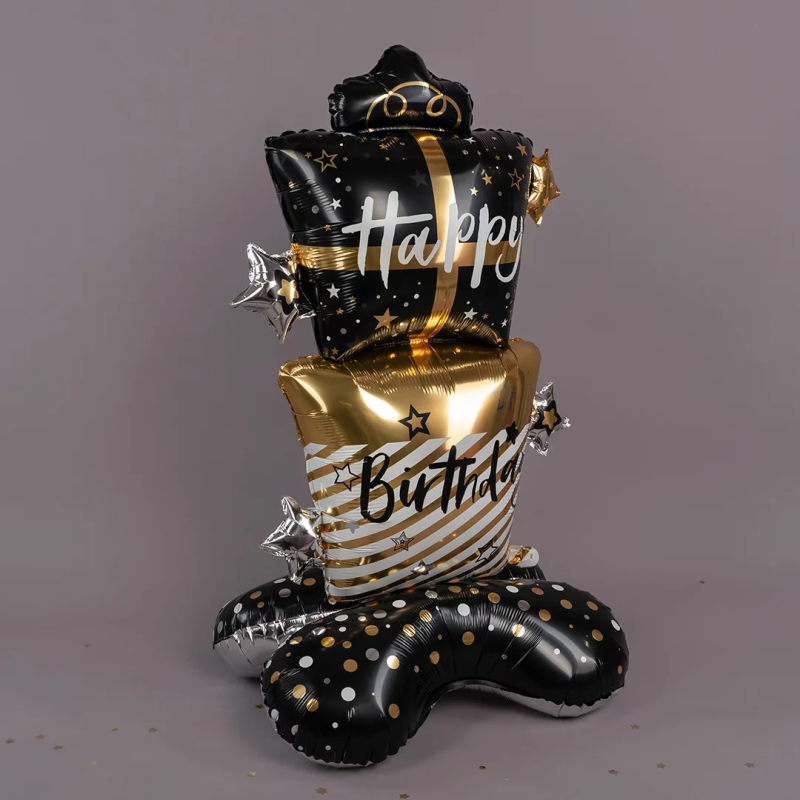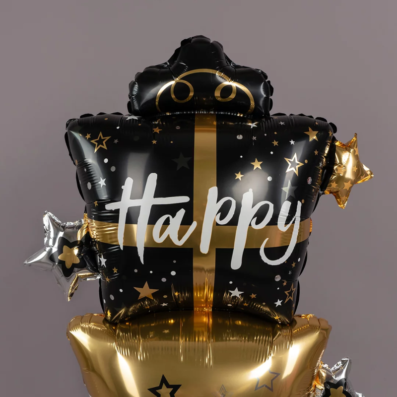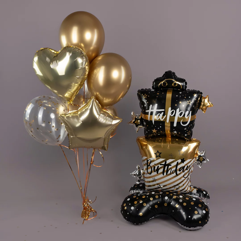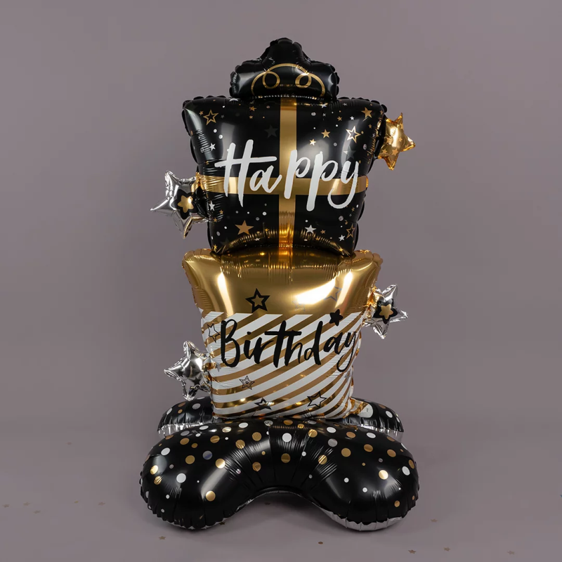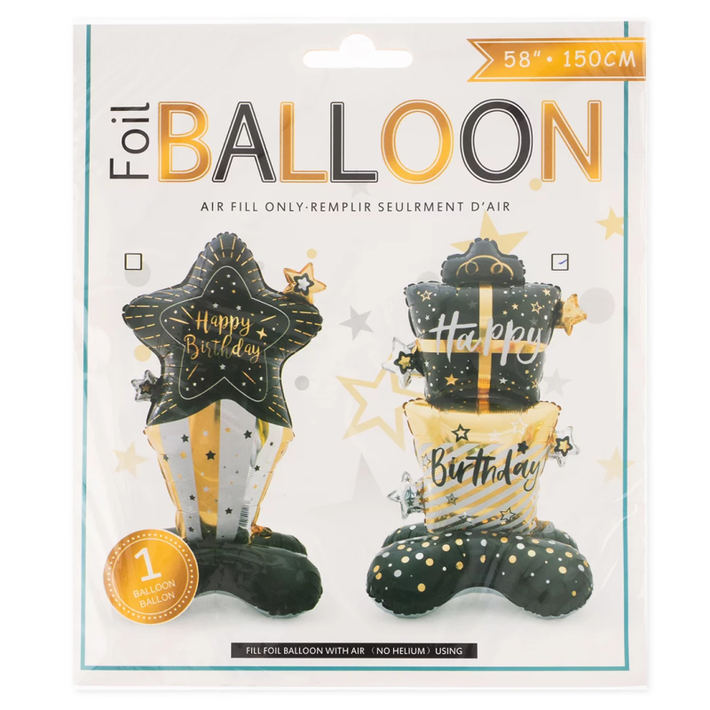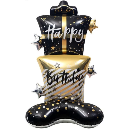 Шар 3D (59''/150 см) Фигура на подставке, Стильные подарки, Черный/Золото, 1 шт. в уп., 24862