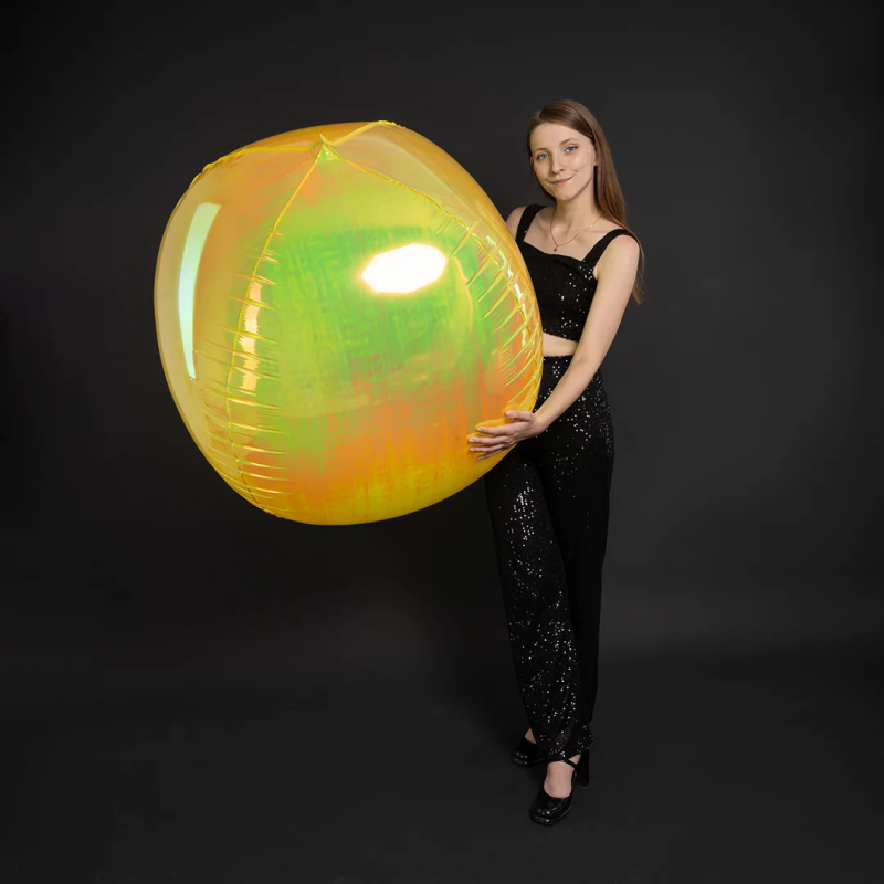 Шар 3D (60''/152 см) Сфера, Желтый, Хамелеон, 1 шт. в уп., 24938