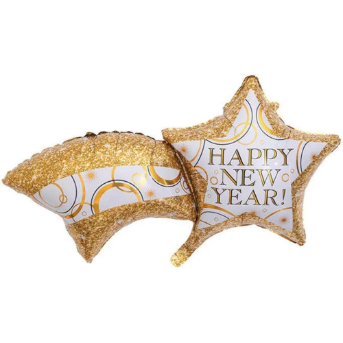 Шар (40''/102 см) Фигура, Счастливого Нового Года (комета), Золото, 1 шт., 19204