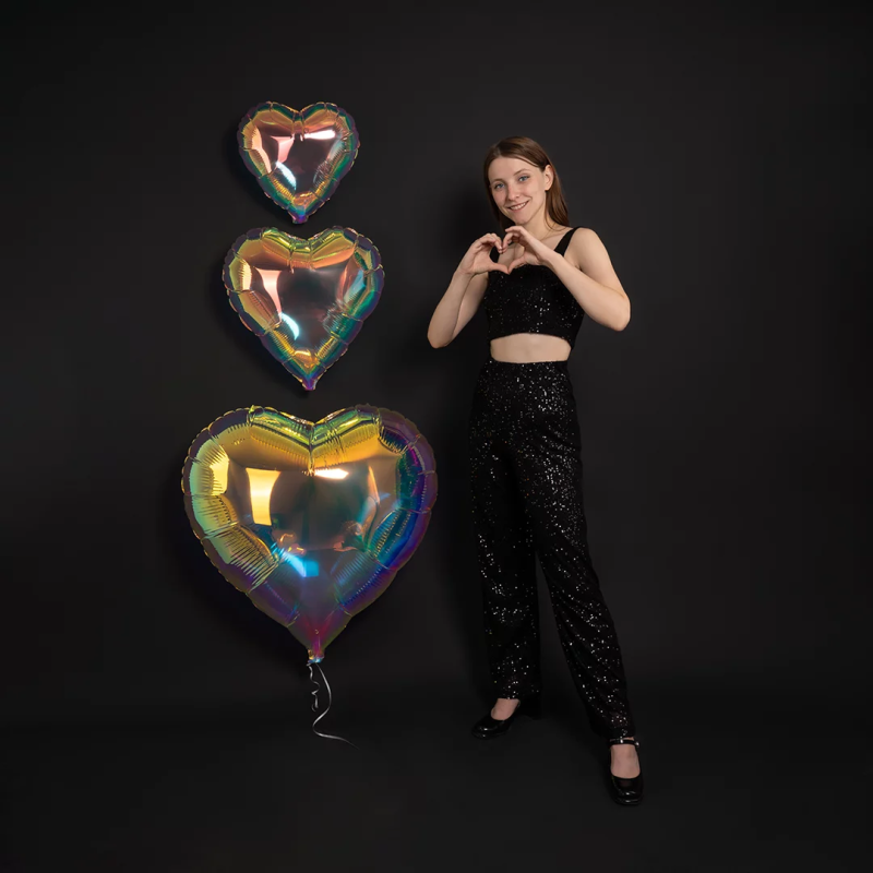 Шар (40''/102 см) Сердце, Зеркальный, Хамелеон, 1 шт. в уп., 24990