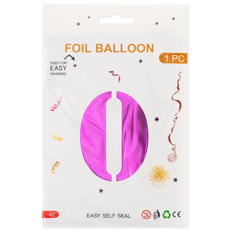 Шар (40''/102 см) Цифра, 0, Фуше, Металлик, 1 шт. в уп., 24220