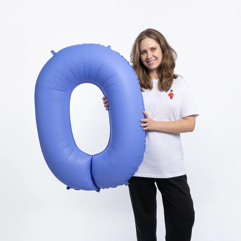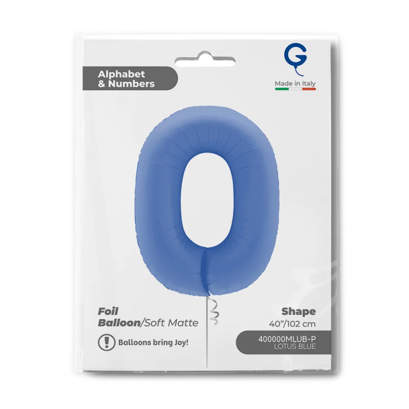 Шар (40''/102 см) Цифра, 0, Голубой Лотос, Матовый, 1 шт. в уп., 400000MLUB-P