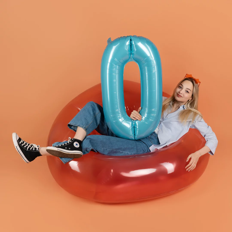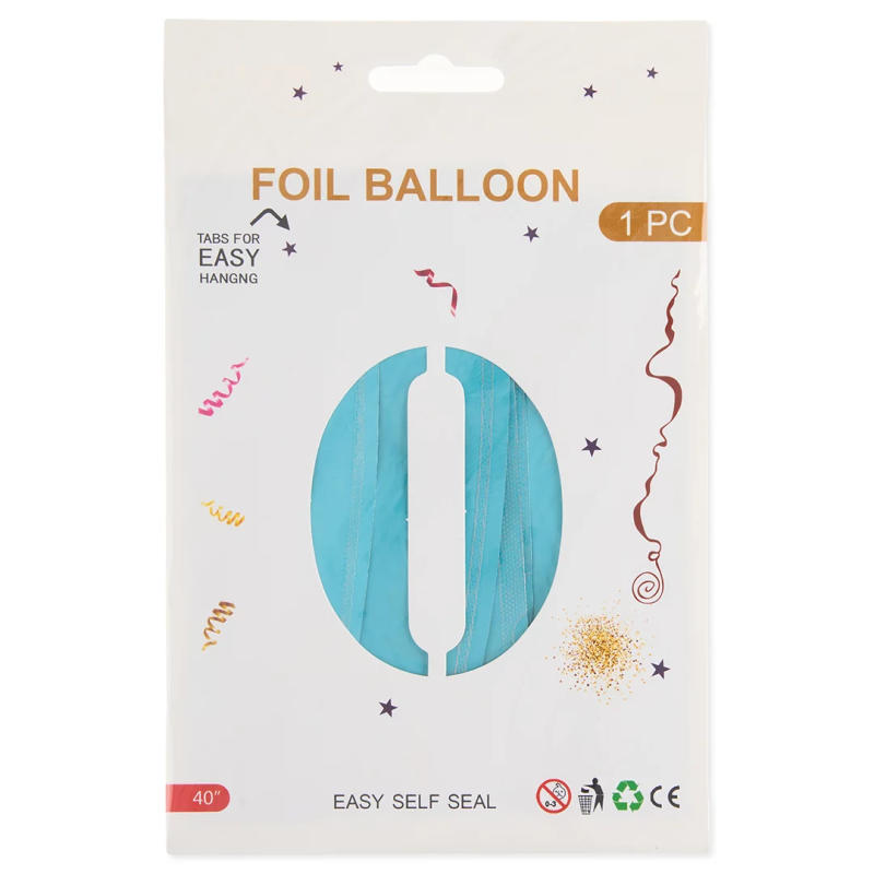 Шар (40''/102 см) Цифра, 0, Голубой, Матовый, 1 шт. в уп., 24110