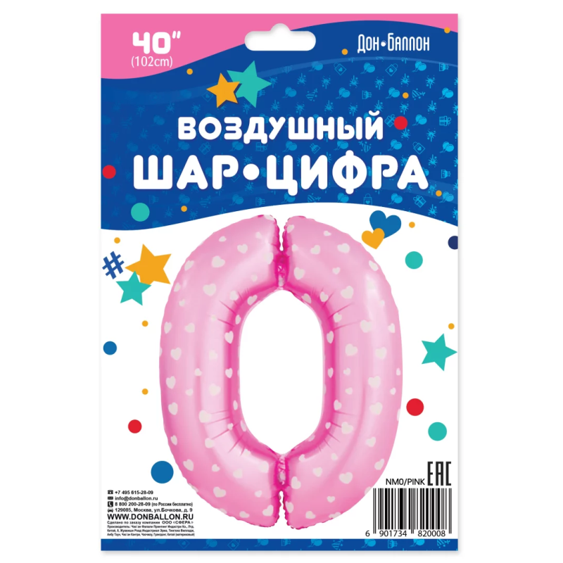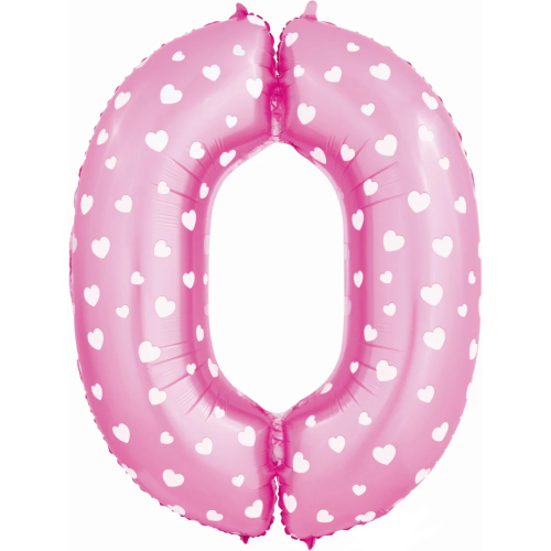 Шар (40''/102 см) Цифра, 0 Сердечки, Розовый, 1 шт. в уп., NMP0/PINK/V