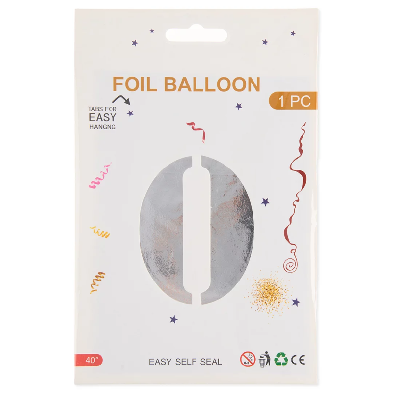 Шар (40''/102 см) Цифра, 0, Серебро, Металлик, 1 шт. в уп., 24090
