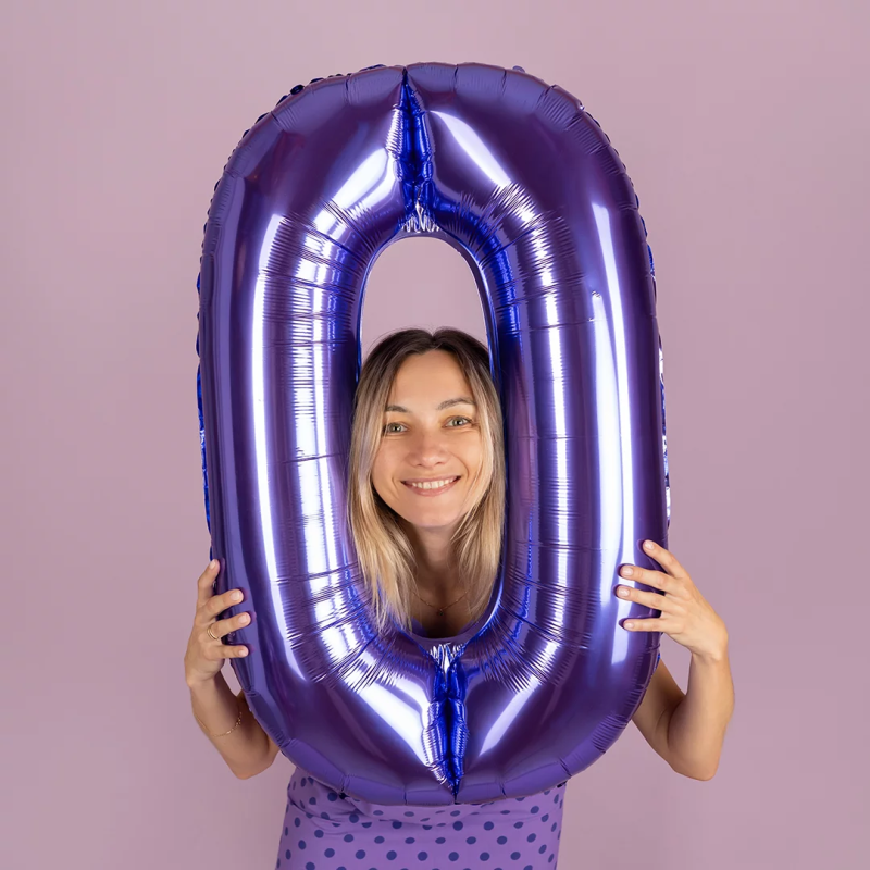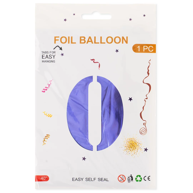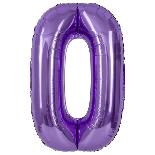 Шар (40''/102 см) Цифра, 0, Сиреневый, Металлик, 1 шт. в уп., 24210