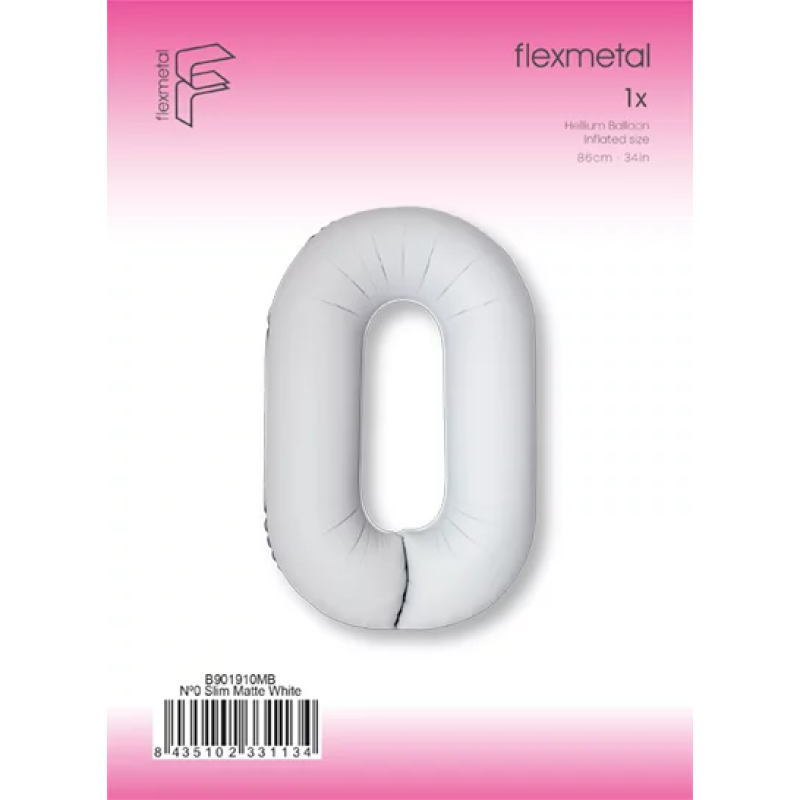 Шар (40''/102 см) Цифра, 0 Slim, Белый, Матовый, 1 шт. в уп., B901910MB