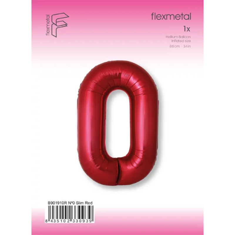 Шар (40''/102 см) Цифра, 0 Slim, Красный, Металлик, 1 шт. в уп., B901910R