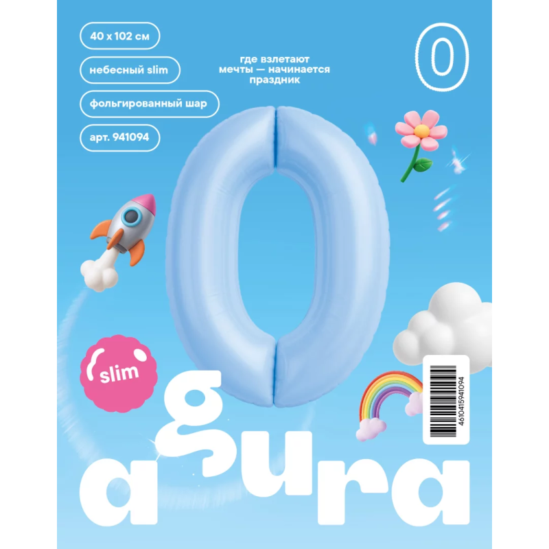 | Линейка | Agura Шар (40''/102 см) Цифра, Slim, Небесный |