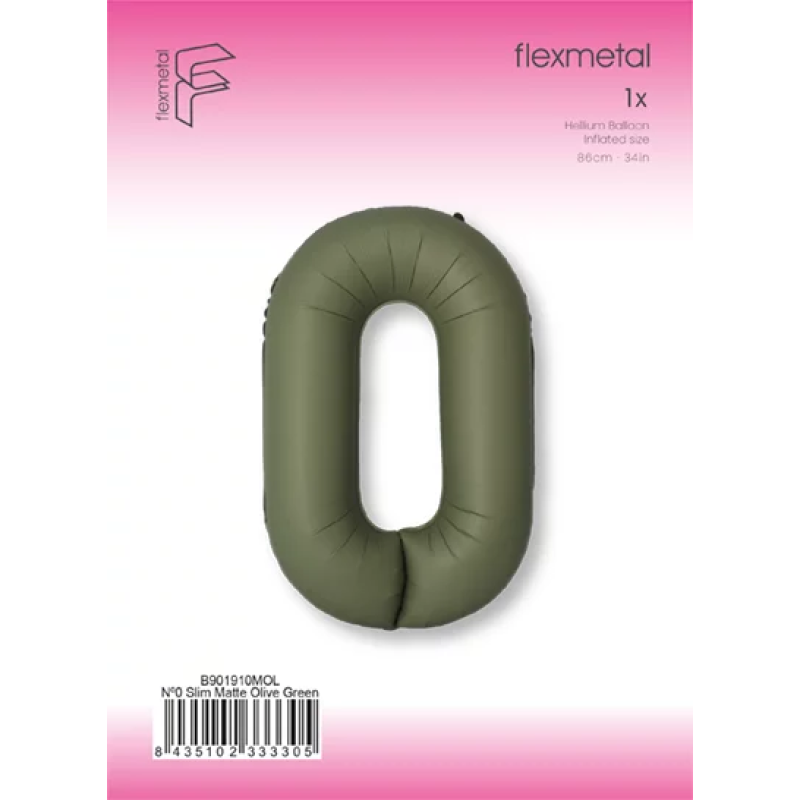 Шар (40''/102 см) Цифра, 0 Slim, Оливковый, Матовый, 1 шт. в уп., B901910MOL