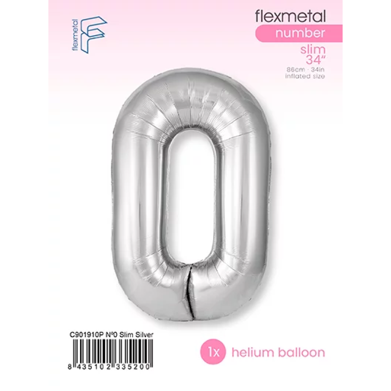 Шар (40''/102 см) Цифра, 0 Slim, Серебро, 1 шт. в уп., C901910P
