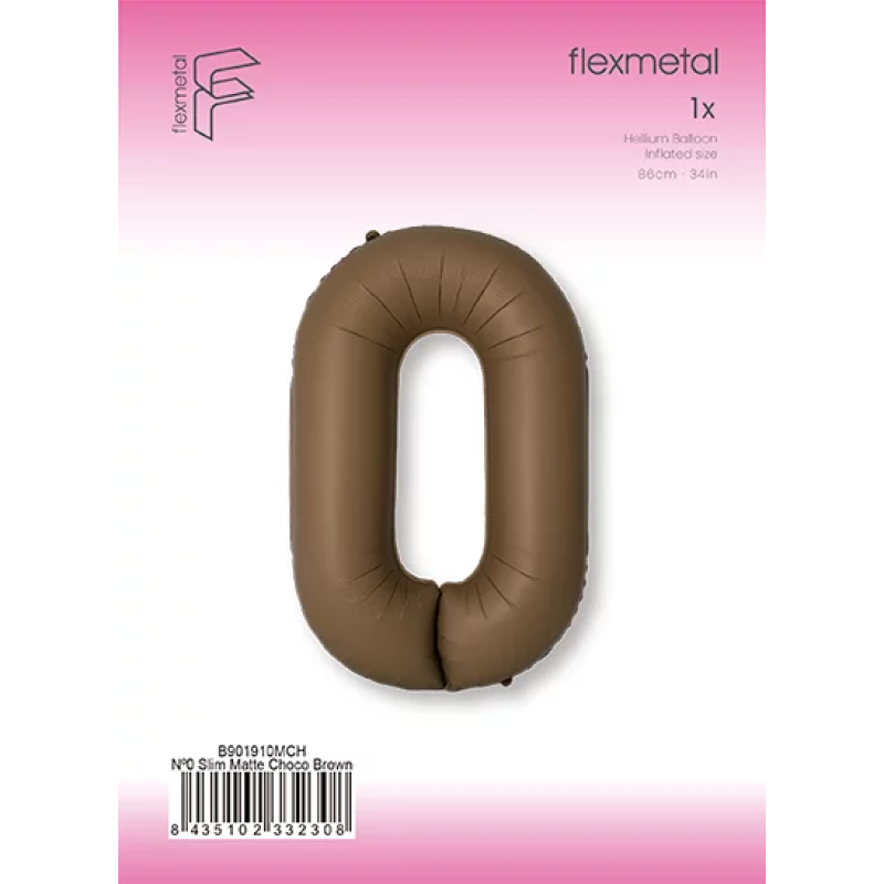 Шар (40''/102 см) Цифра, 0 Slim, Шоколад, Матовый, 1 шт. в уп., B901910MCH