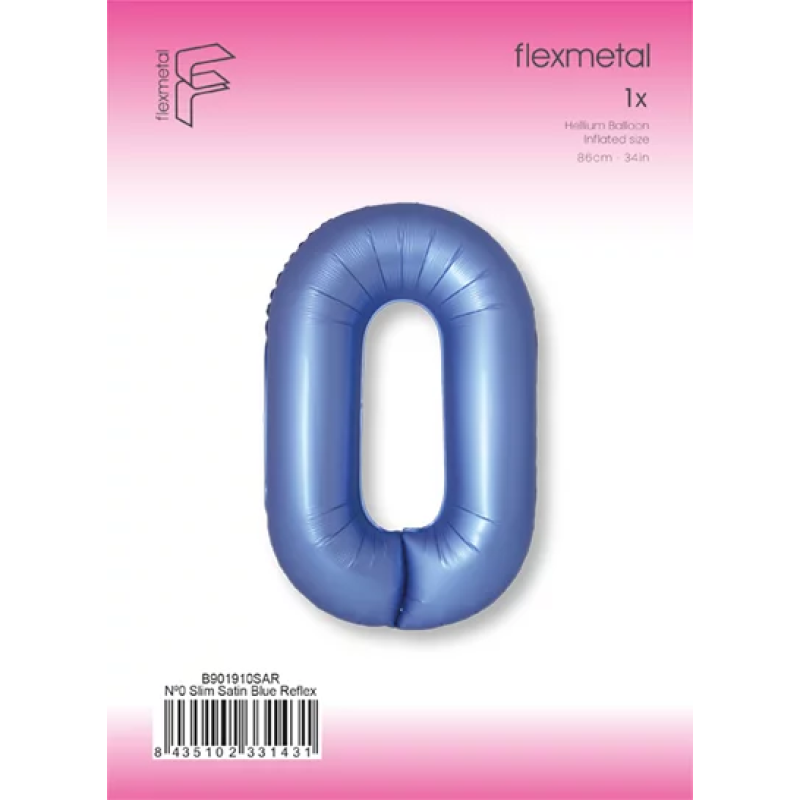 Шар (40''/102 см) Цифра, 0 Slim, Синий хром, Сатин, 1 шт. в уп., B901910SAR