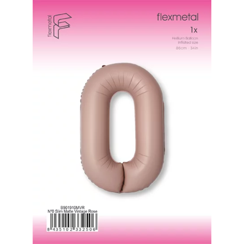 Шар (40''/102 см) Цифра, 0 Slim, Винтажная роза, Матовый, 1 шт. в уп., B901910MVR