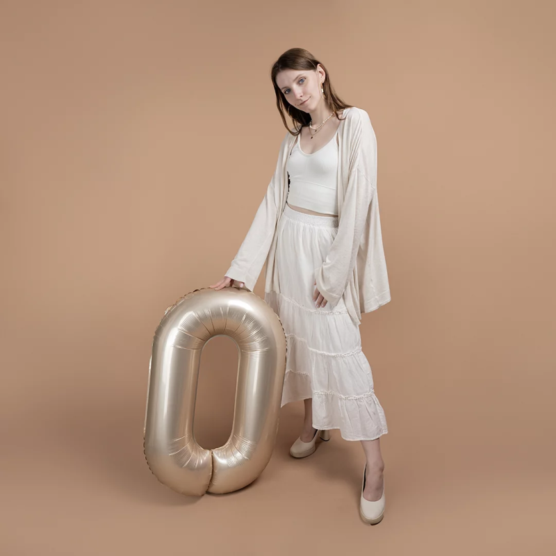 Шар (40''/102 см) Цифра, 0 Slim, Звездное Золото, Матовый, 1 шт. в уп., B901910MSG