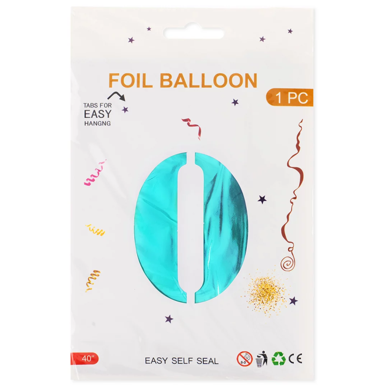 Шар (40''/102 см) Цифра, 0, Тиффани, Металлик, 1 шт. в уп., 24230